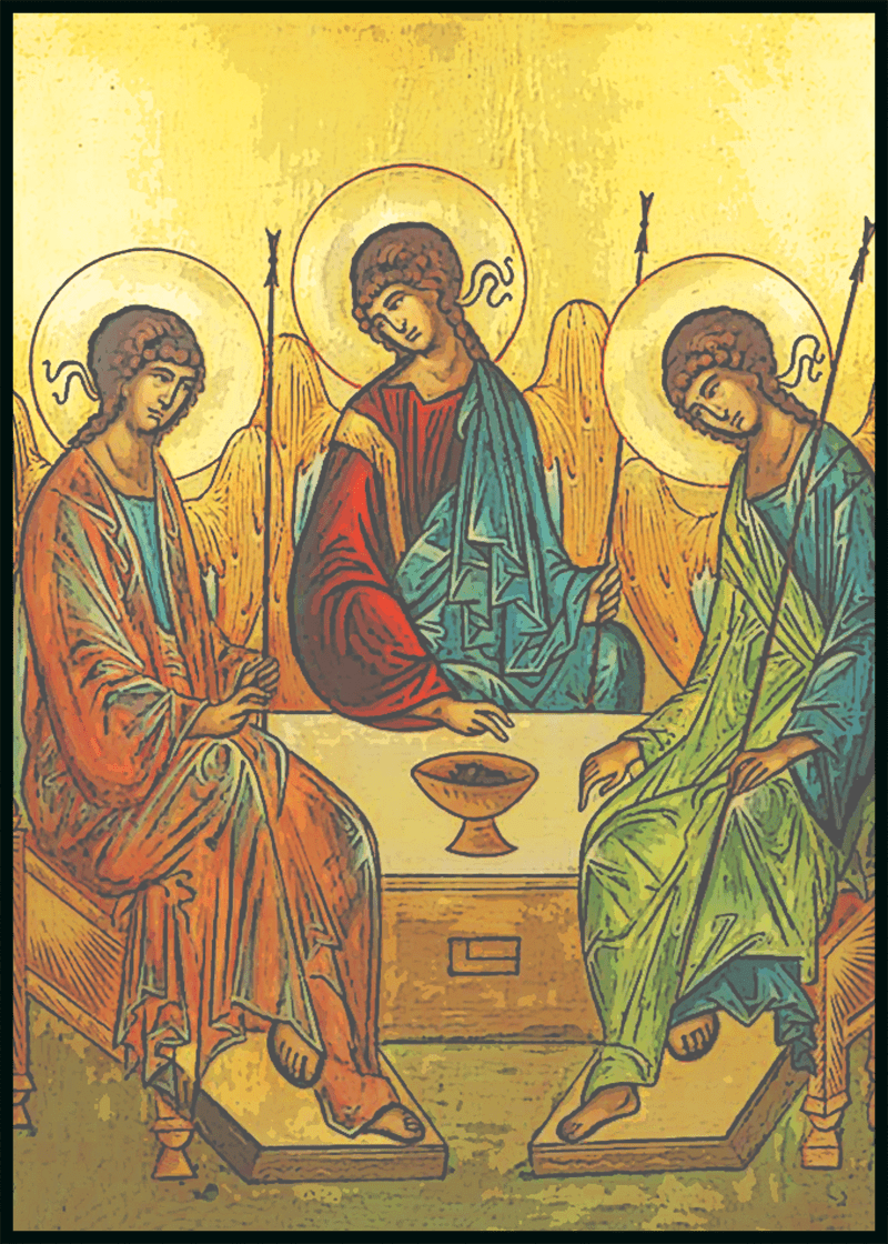 For me. Rublev’s icon of the Trinity invariably comes to mind, and the image you see above.